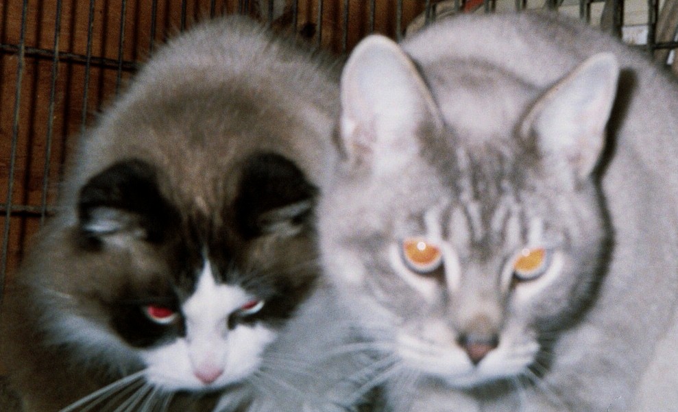 on the left and Sinclair, somewhat Siamese, on the right. Sadly both of these boys have now gone to the Rainbow Bridge. Jack